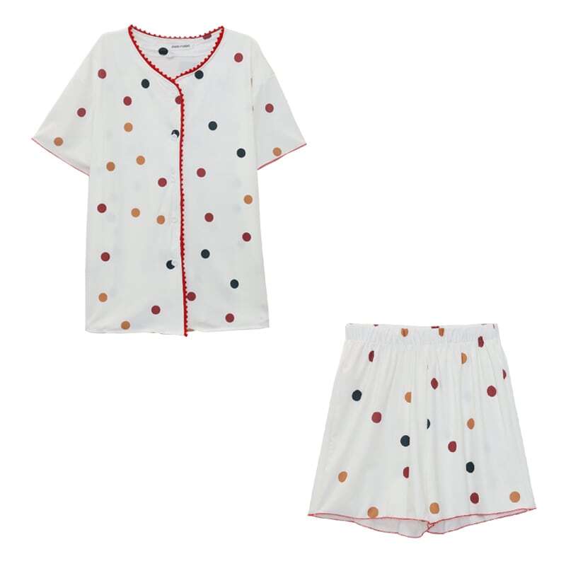 【送料無料】レディース パジャマ ナイトウエア ドット柄 水玉 レトロカラー 半袖 半ズボン 大人可愛い ママコーデ ママファッション 韓国 オルチャンファッション 人気 トレンド 新作 20代 30代 40代 ルームウェア セットアップ 2点セット 2ピース ツーピース 上下セット 部屋着 寝巻き おうち時間 家着 ステイホーム おしゃれ カジュアル 可愛い キュート リラックス お泊り 旅行 シンプル 無地 ゆったり デイリー 普段使い 春 夏 CO3064