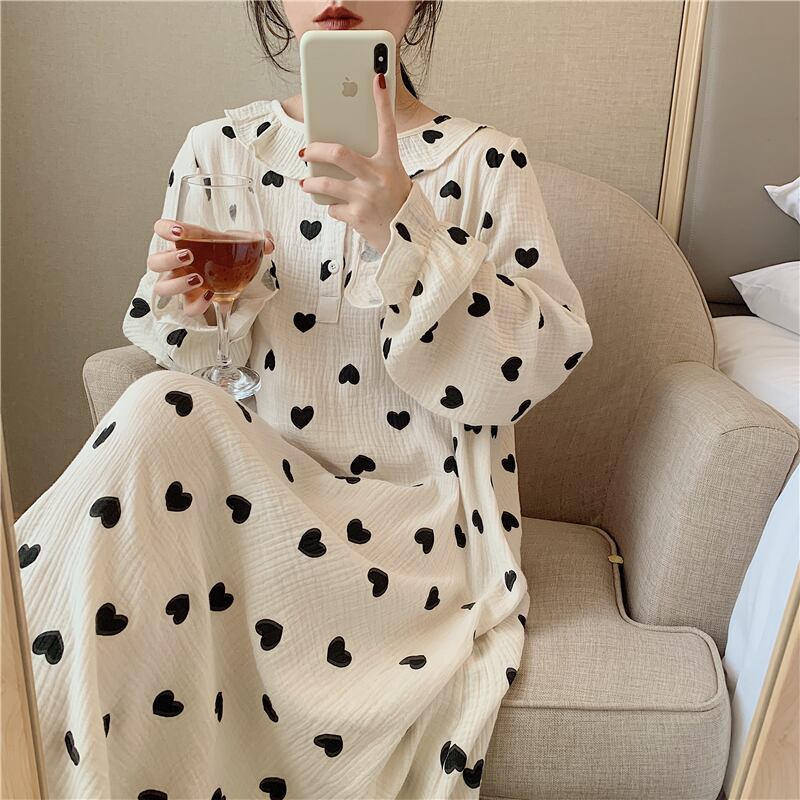 【送料無料】レディース パジャマ ワンピース ハート柄 フリル キャンディースリーブ 長袖 ナイトウェア 大人可愛い ママコーデ ママファッション 韓国 オルチャンファッション 人気 トレンド 新作 20代 30代 40代 ルームウェア 部屋着 寝巻き おうち時間 家着 ステイホーム おしゃれ カジュアル 可愛い キュート リラックス お泊り 旅行 シンプル 無地 ゆったり デイリー 普段使い 秋 春 夏 CO3065