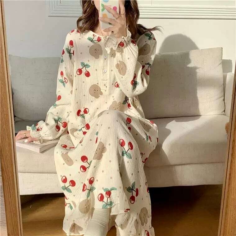 【送料無料】レディース パジャマ クマ柄 ナイトウエア ワンピース キャンディースリーブ 長袖 フリル 大人可愛い ママコーデ ママファッション 韓国 オルチャンファッション 人気 トレンド 新作 20代 30代 40代 ルームウェア 部屋着 寝巻き おうち時間 家着 ステイホーム おしゃれ カジュアル 可愛い キュート リラックス お泊り 旅行 シンプル 無地 ゆったり デイリー 普段使い 秋 春 夏 CO3067
