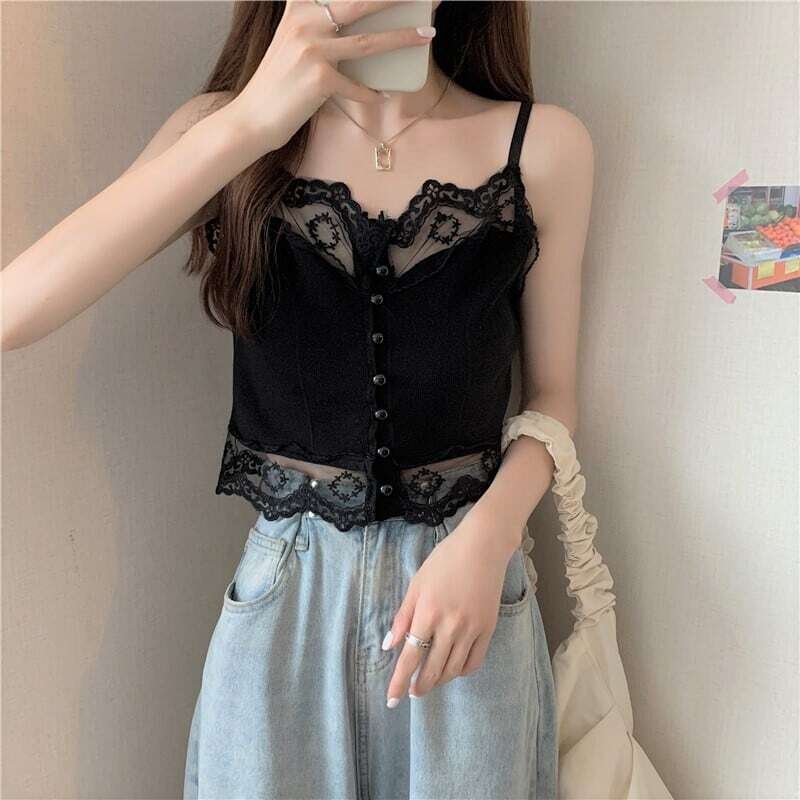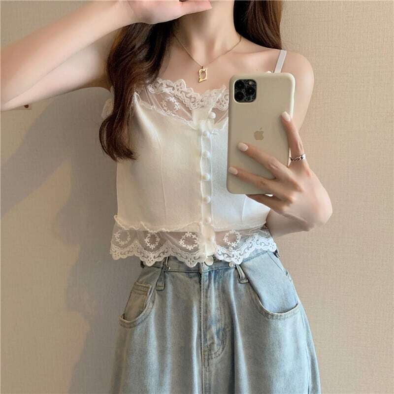 花柄レースの透け感を楽しむ、ちょっぴりセクシーなキャミソール。