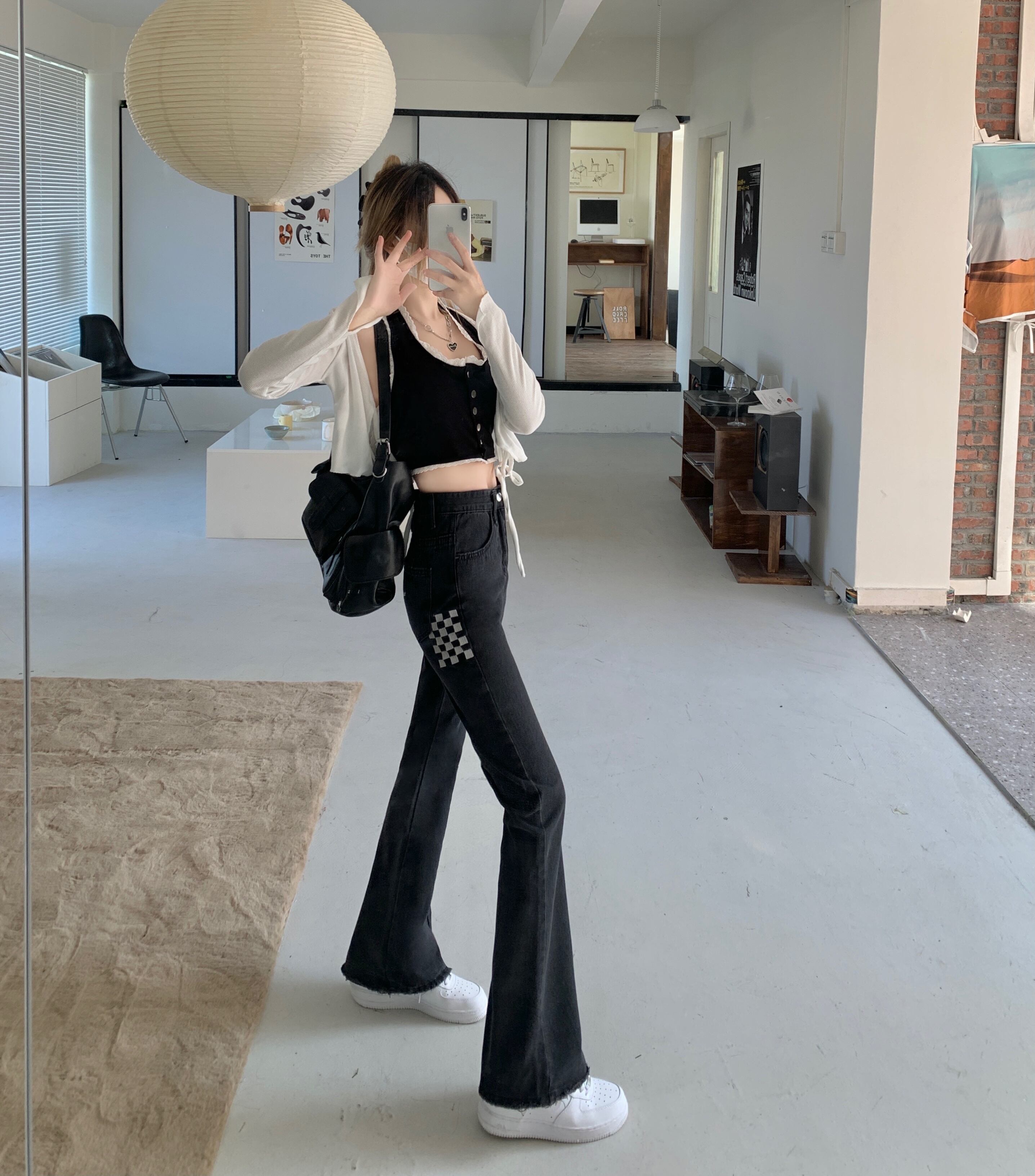 【送料無料】レディース デニムパンツ ブーツカット ブロックチェック 格子柄 ハイウエスト 大人可愛い ママコーデ ママファッション 韓国 オルチャンファッション 人気 トレンド 新作 20代 30代 40代 きれいめ レトロ シンプル お出かけ デート おしゃれ 通勤 通学 オフィス OL デイリー 普段着 ラフ カジュアル フェミニン シック ゆったり 体型カバー 着痩せ 着回し インスタ映え 春 夏 秋 冬 CO3262