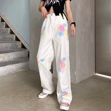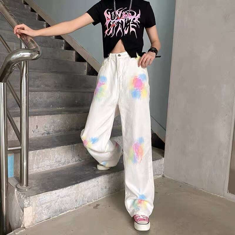 【送料無料】レディース 2カラー デニムパンツ タイダイ ペイント ワイドパンツ ハイウエスト ストリート 大人可愛い ママコーデ ママファッション 韓国 オルチャンファッション 人気 トレンド 新作 20代 30代 40代 レトロ シンプル お出かけ デート おしゃれ 通勤 通学 オフィス OL デイリー 普段着 ラフ カジュアル ゆったり 体型カバー 着痩せ 着回し インスタ映え 春 秋 CO3265