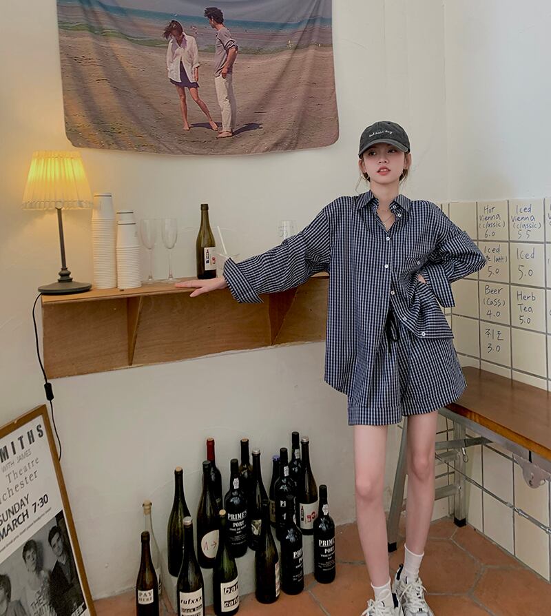 【送料無料】レディース セットアップ シャツ ショートパンツ 長袖 チェック柄 大人可愛い ママコーデ ママファッション 韓国 オルチャンファッション 人気 トレンド 新作 20代 30代 40代 きれいめ レトロ シンプル お出かけ デート おしゃれ 通勤 通学 オフィス OL デイリー 普段着 ラフ カジュアル フェミニン ゆったり 体型カバー 着痩せ 着回し インスタ映え 春 夏 秋 CO3278