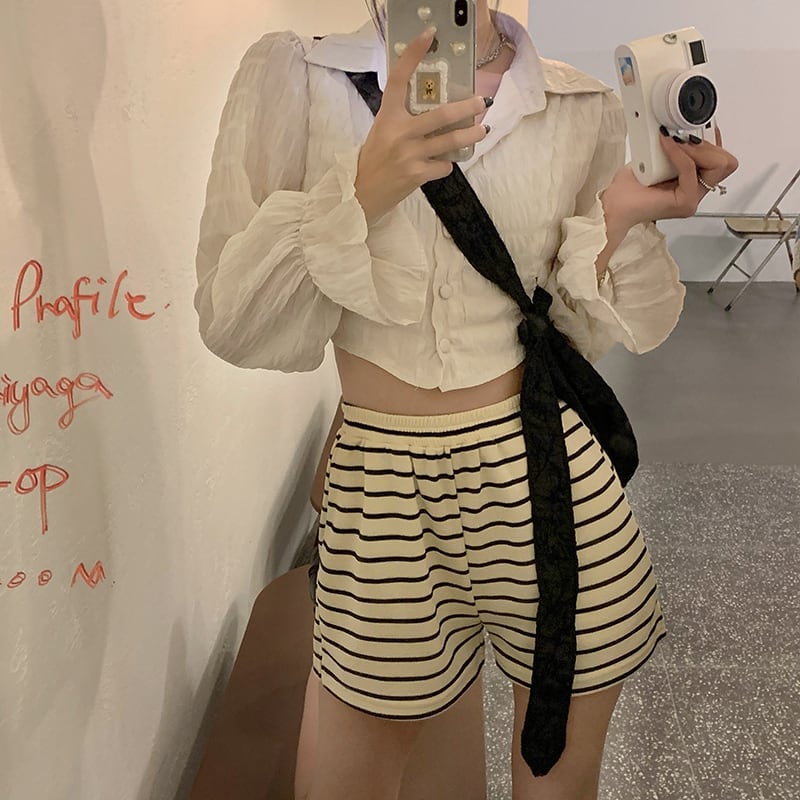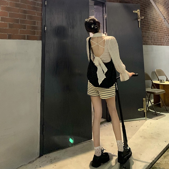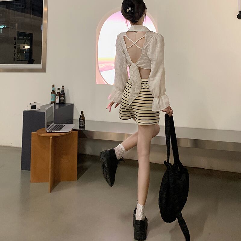 【送料無料】レディース 2デザイン シャツ ブラウス ショート丈 クロップド丈 長袖 フレア袖 ワッシャー加工 セクシー 背中開き 背中見せ バックリボン バックコンシャス シャーリング 大人可愛い ママコーデ ママファッション 韓国 オルチャンファッション 人気 トレンド 新作 20代 30代 40代 きれいめ レトロ シンプル お出かけ デート おしゃれ 通勤 通学 オフィス OL デイリー 普段着 ラフ カジュアル フェミニン シック 着痩せ 着回し インスタ映え 春 夏 秋 CO3290