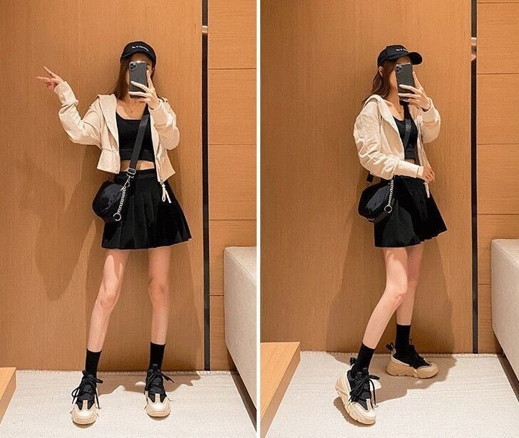 ヒールじゃなくてもスポーティにスタイルアップ。