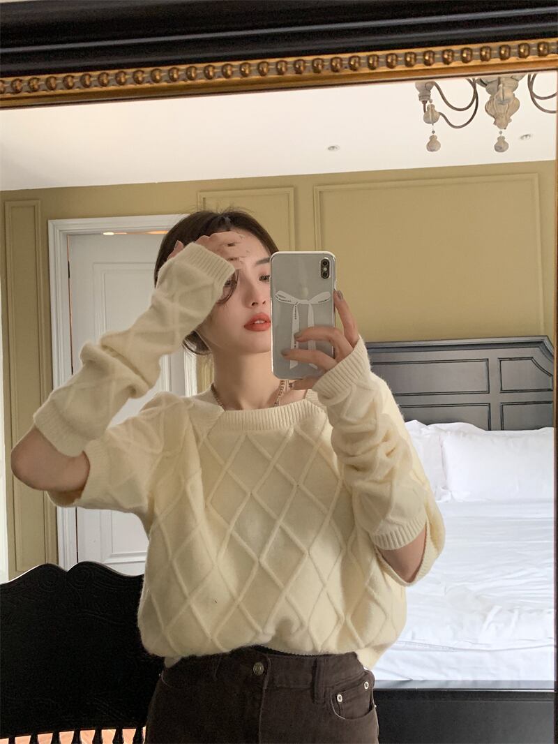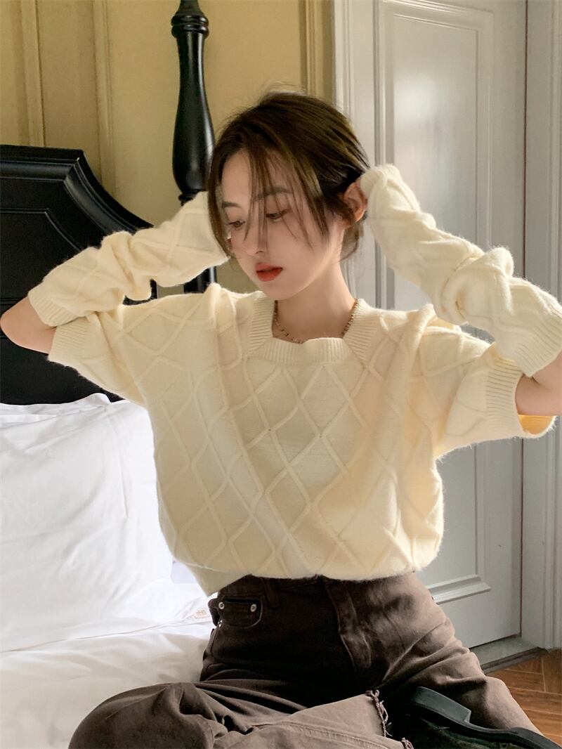【送料無料】レディース ニット アーガイル柄 ショート丈 スクエアネック アームウォーマー 大人可愛い ママコーデ ママファッション 韓国 オルチャンファッション 人気 トレンド 新作 20代 30代 40代 きれいめ レトロ シンプル お出かけ デート おしゃれ 通勤 通学 オフィス OL デイリー 普段着 ラフ カジュアル フェミニン シック ゆったり 体型カバー 着痩せ 着回し インスタ映え 春 秋 冬 CO3248