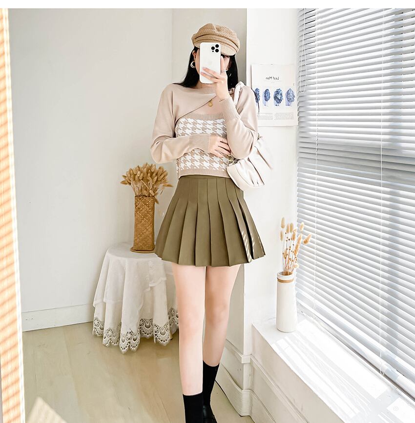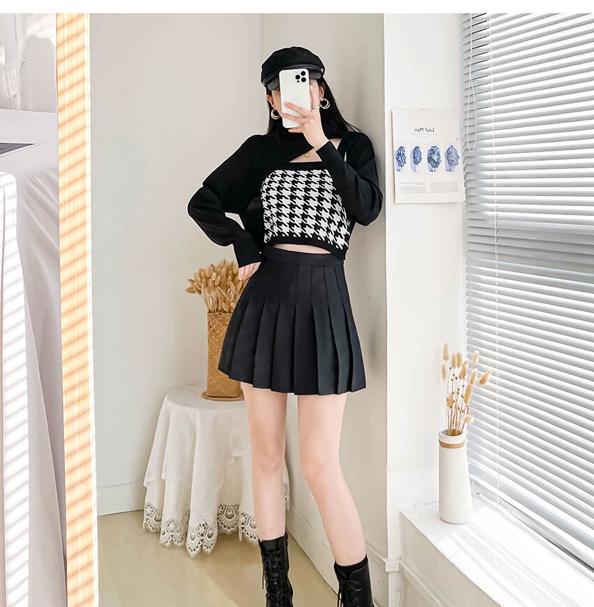 【送料無料】レディース 2カラー セットアップ ニット プリーツスカート ショート丈 千鳥格子柄 ミニスカート 大人可愛い ママコーデ ママファッション 韓国 オルチャンファッション 人気 トレンド 新作 20代 30代 40代 きれいめ レトロ シンプル お出かけ デート おしゃれ 通勤 通学 オフィス OL デイリー 普段着 ラフ カジュアル フェミニン シック ゆったり 体型カバー 着痩せ 着回し インスタ映え 春 秋 冬 CO3450