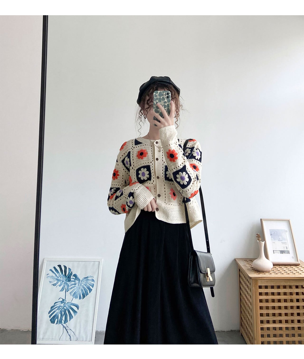 【送料無料】レディース カーディガン 透かし彫り ニット生地 ラウンドネック ショート丈 長袖 花柄 デコレーション 大人可愛い ママコーデ ママファッション 韓国 オルチャンファッション 人気 トレンド 新作 20代 30代 40代 きれいめ レトロ シンプル お出かけ デート おしゃれ 通勤 通学 オフィス OL デイリー 普段着 ラフ カジュアル フェミニン シック ゆったり 体型カバー 着痩せ 着回し インスタ映え 春 秋 CO3255