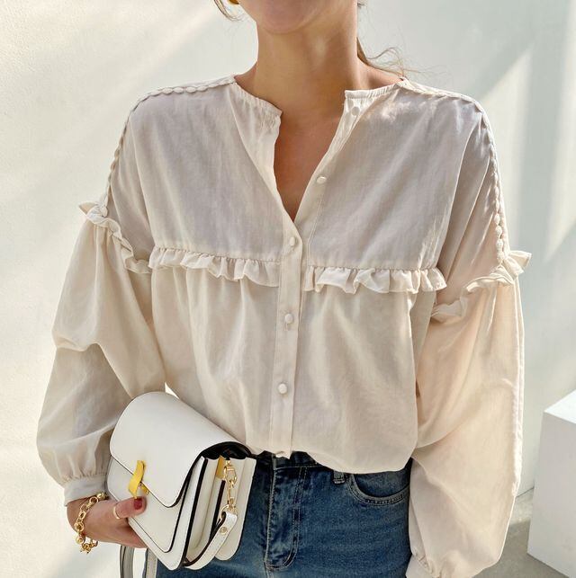 【送料無料】レディース 2カラー ブラウス シャツ 長袖 ラウンドネック シングルブレスト 切り替え フリル 大人可愛い ママコーデ ママファッション 韓国 オルチャンファッション 人気 トレンド 新作 20代 30代 40代 きれいめ レトロ シンプル お出かけ デート おしゃれ 通勤 通学 オフィス OL デイリー 普段着 ラフ カジュアル フェミニン シック ゆったり 体型カバー 着痩せ 着回し インスタ映え 春 秋 CO3459