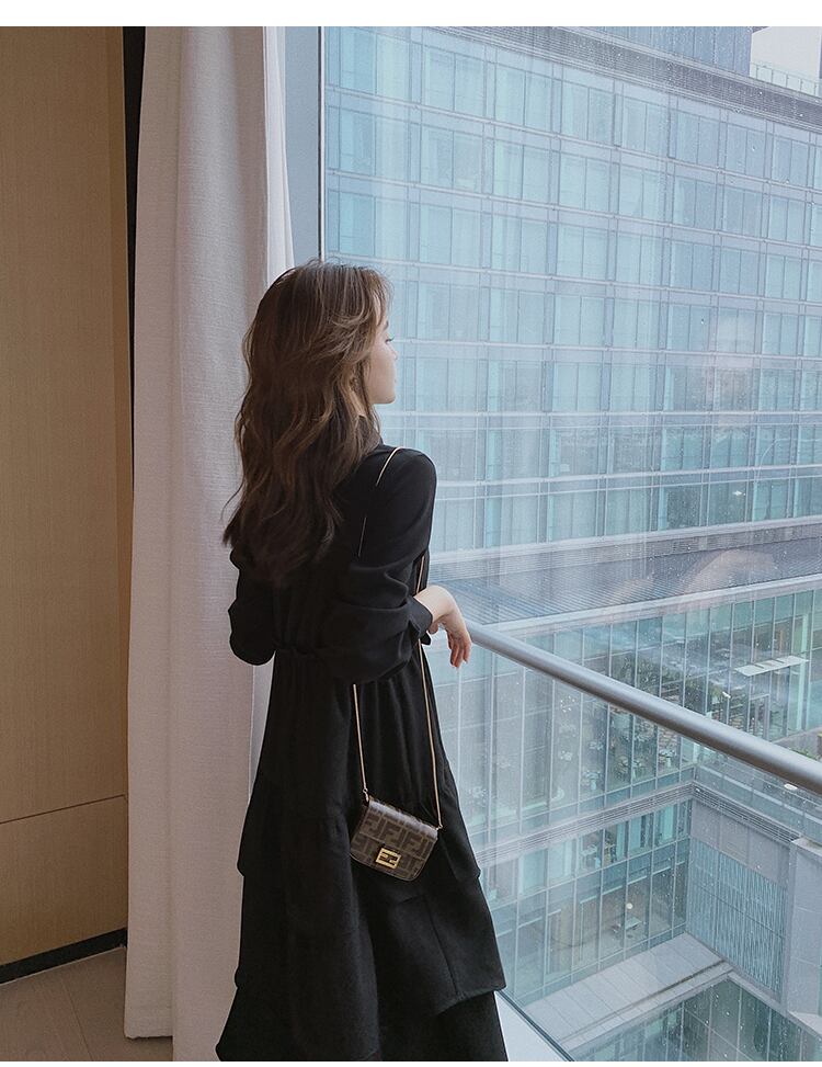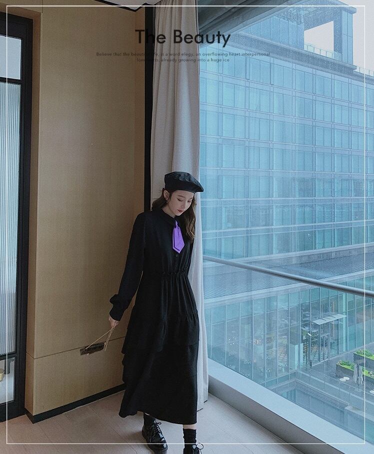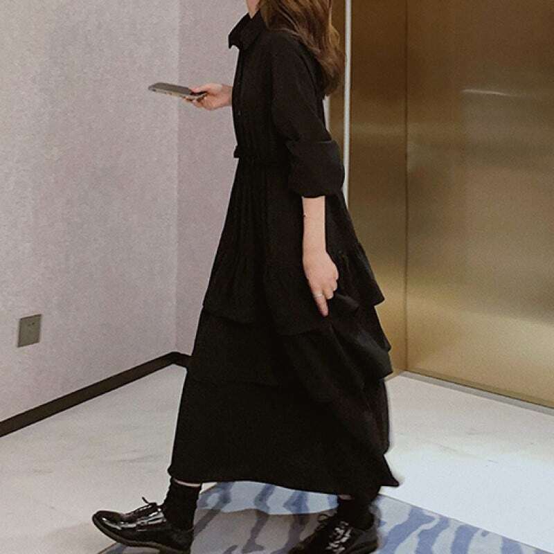 【送料無料】レディース ワンピース シャツワンピース ティアード 長袖 フリル ロングワンピース ブラック 大人可愛い ママコーデ ママファッション 韓国 オルチャンファッション 人気 トレンド 新作 20代 30代 40代 きれいめ レトロ シンプル お出かけ デート おしゃれ 通勤 通学 オフィス OL デイリー 普段着 ラフ カジュアル フェミニン シック ゆったり 体型カバー 着痩せ 着回し インスタ映え 春 秋 CO3477