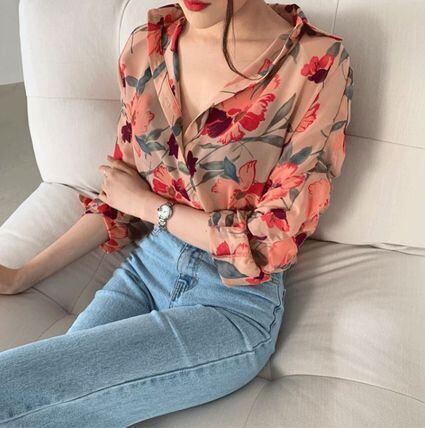 【送料無料】レディース ブラウス シャツ シフォン 花柄 フラワー 長袖 大人可愛い ママコーデ ママファッション 韓国 オルチャンファッション 人気 トレンド 新作 20代 30代 40代 きれいめ レトロ シンプル お出かけ デート おしゃれ 通勤 通学 オフィス OL デイリー 普段着 ラフ カジュアル フェミニン シック ゆったり 体型カバー 着痩せ 着回し インスタ映え 春 夏 秋 CO3489