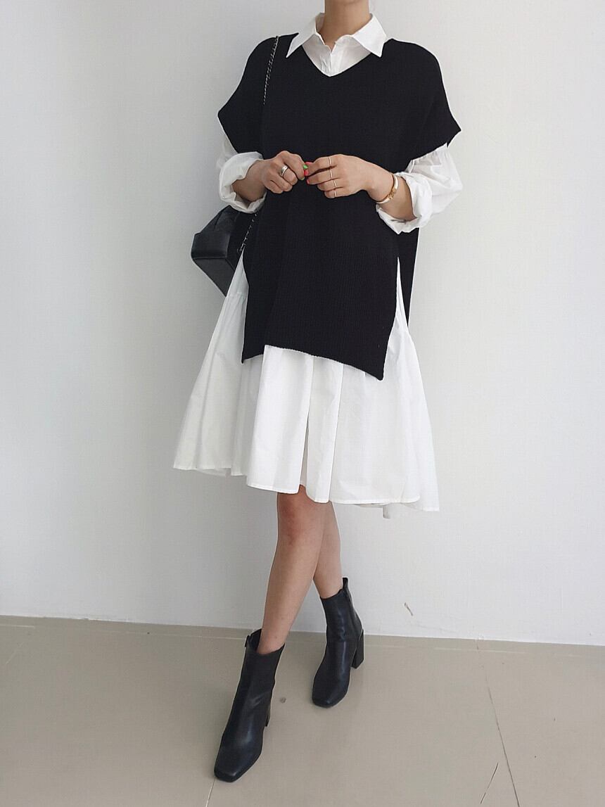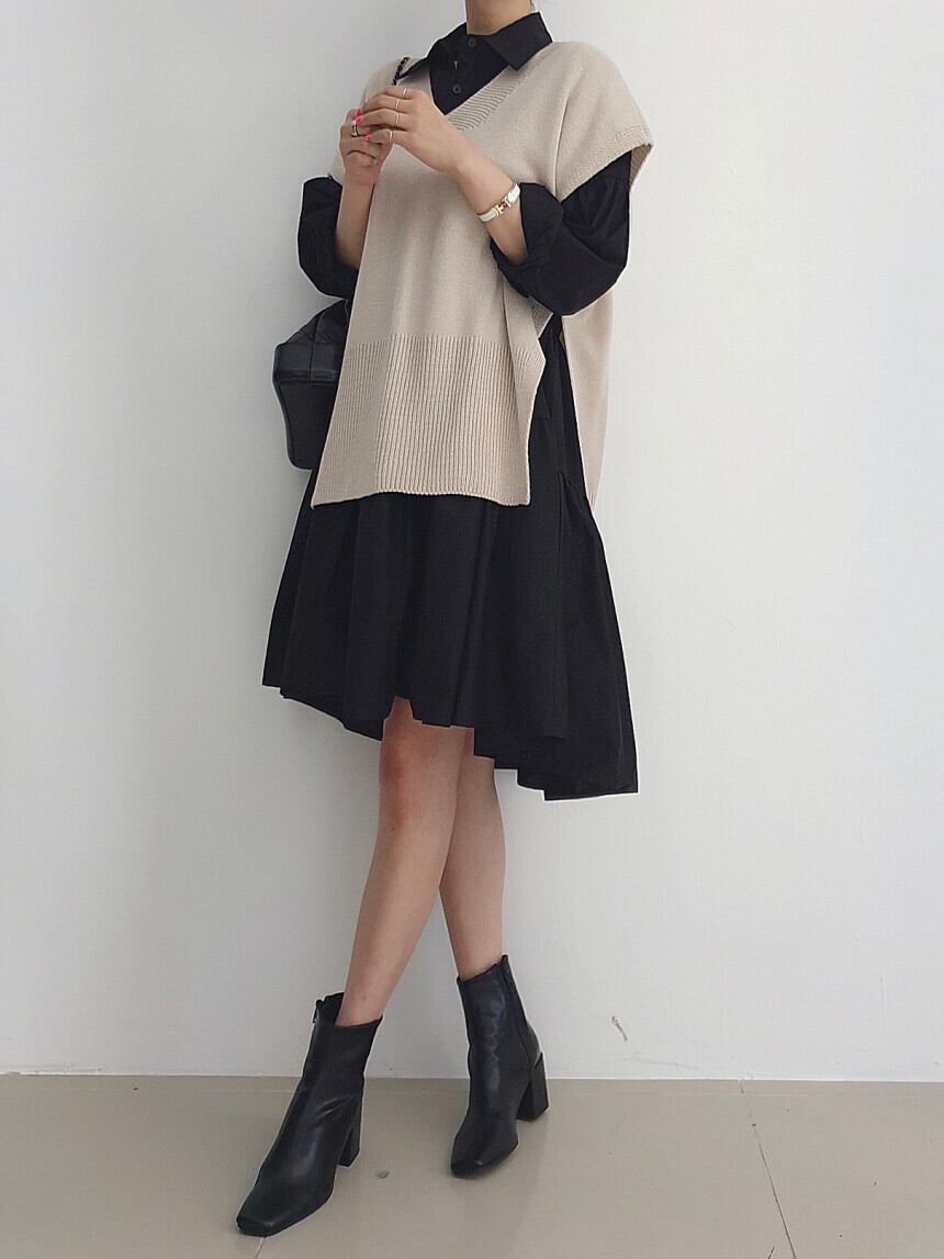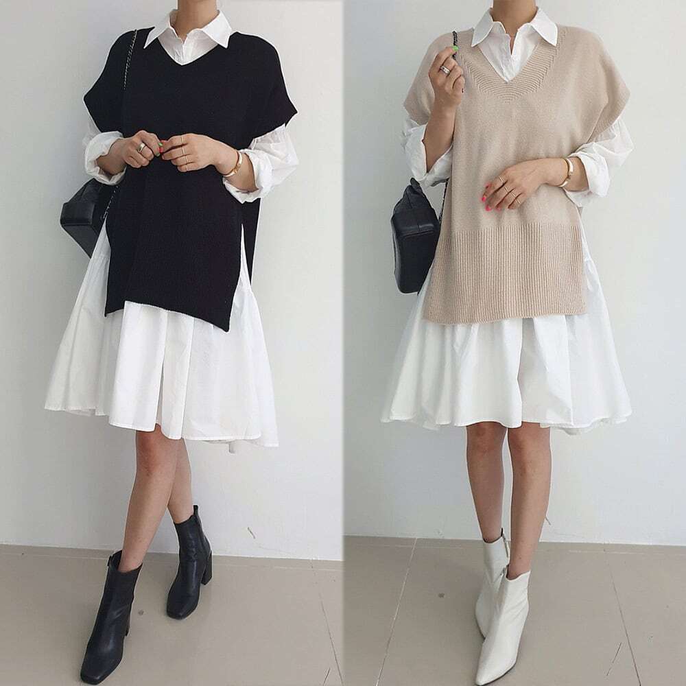 ふんわりシルエットのシャツワンピとベストのセットアップ♡
