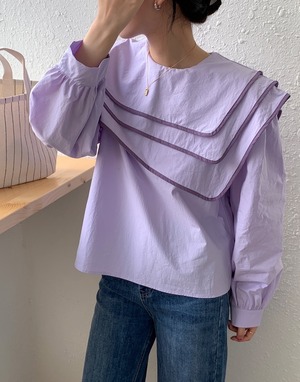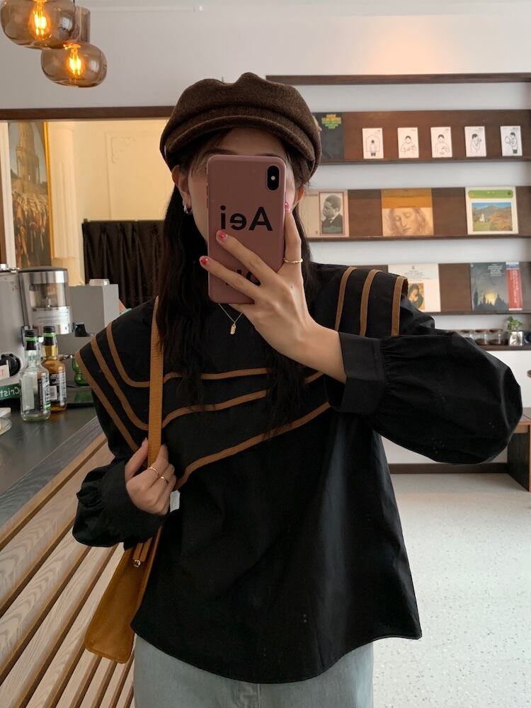 【送料無料】レディース 3カラー プルオーバー ブラウス パフスリーブ 長袖 ビックカラー パイピング 大人可愛い ママコーデ ママファッション 韓国 オルチャンファッション 人気 トレンド 新作 20代 30代 40代 きれいめ レトロ シンプル お出かけ デート おしゃれ 通勤 通学 オフィス OL デイリー 普段着 ラフ カジュアル フェミニン シック ゆったり 体型カバー 着痩せ 着回し インスタ映え 春 秋 CO3493