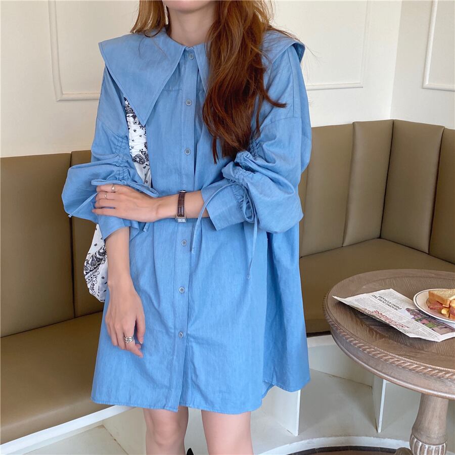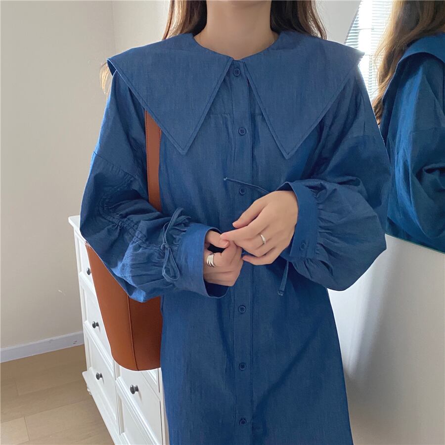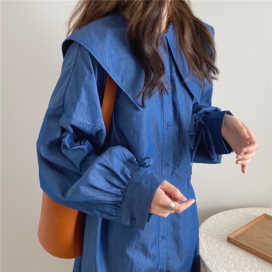 【送料無料】レディース 2カラー シャツワンピース デニム ビックカラー 袖口リボン 長袖 ミニ丈 大人可愛い ママコーデ ママファッション 韓国 オルチャンファッション 人気 トレンド 新作 20代 30代 40代 きれいめ レトロ シンプル お出かけ デート おしゃれ 通勤 通学 オフィス OL デイリー 普段着 ラフ カジュアル フェミニン シック ゆったり 体型カバー 着痩せ 着回し インスタ映え 春 秋 CO3494
