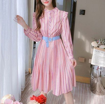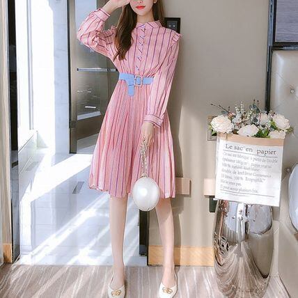 【送料無料】レディース ワンピース ストライプ フリル 膝丈 ウエストマーク 長袖 ベルト 大人可愛い ママコーデ ママファッション 韓国 オルチャンファッション 人気 トレンド 新作 20代 30代 40代 きれいめ レトロ シンプル お出かけ デート おしゃれ 通勤 通学 オフィス OL デイリー 普段着 ラフ カジュアル フェミニン シック ゆったり 体型カバー 着痩せ 着回し インスタ映え 春 秋 CO3502