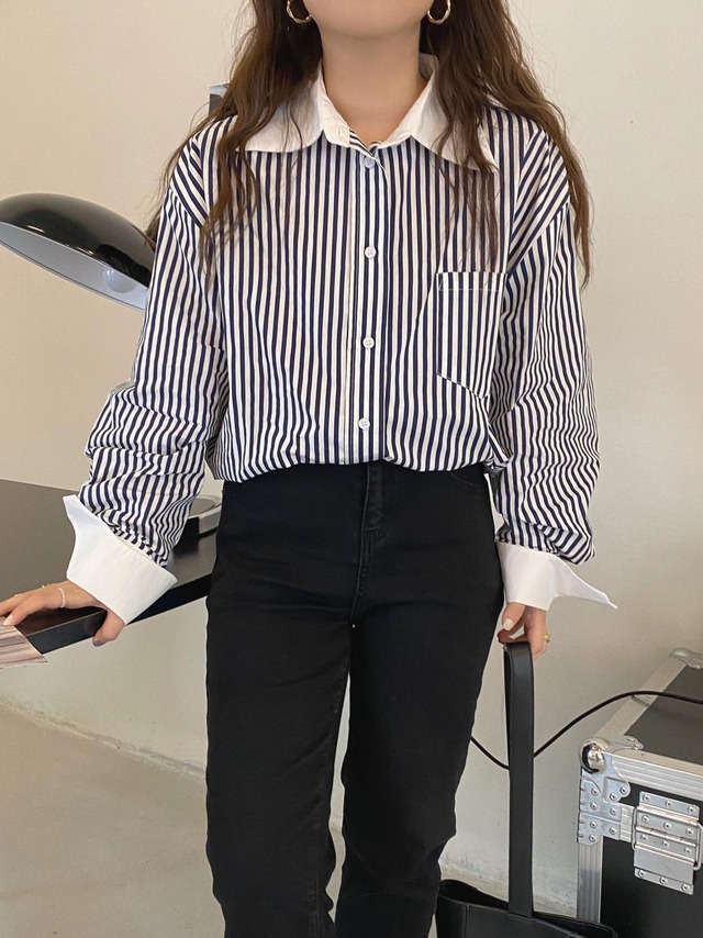 バイカラーストライプシャツ♡