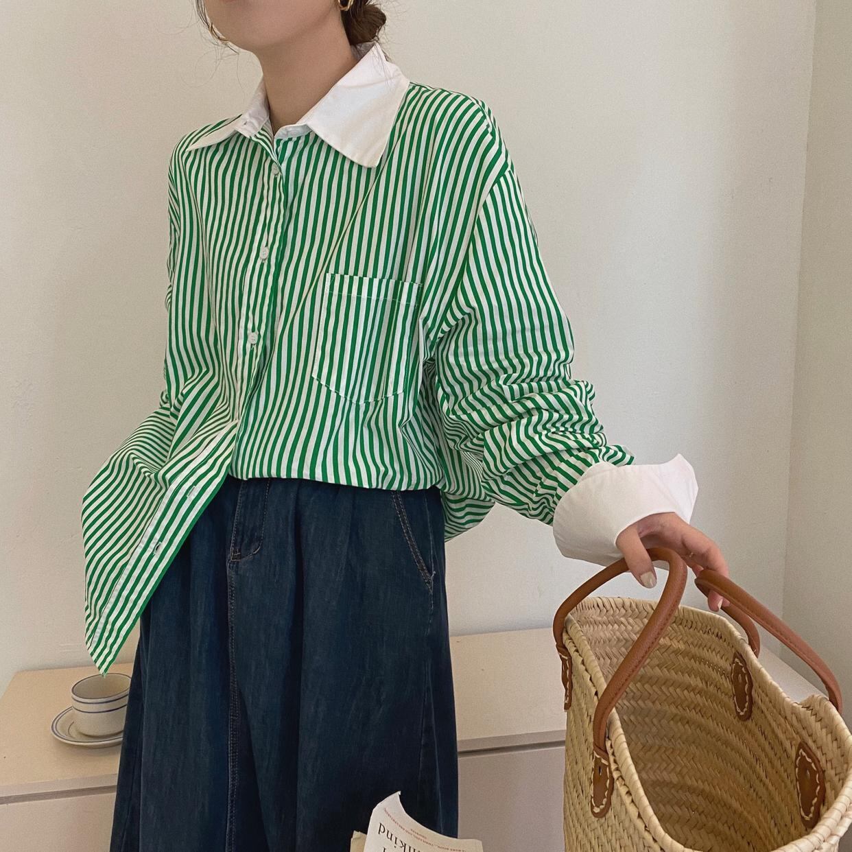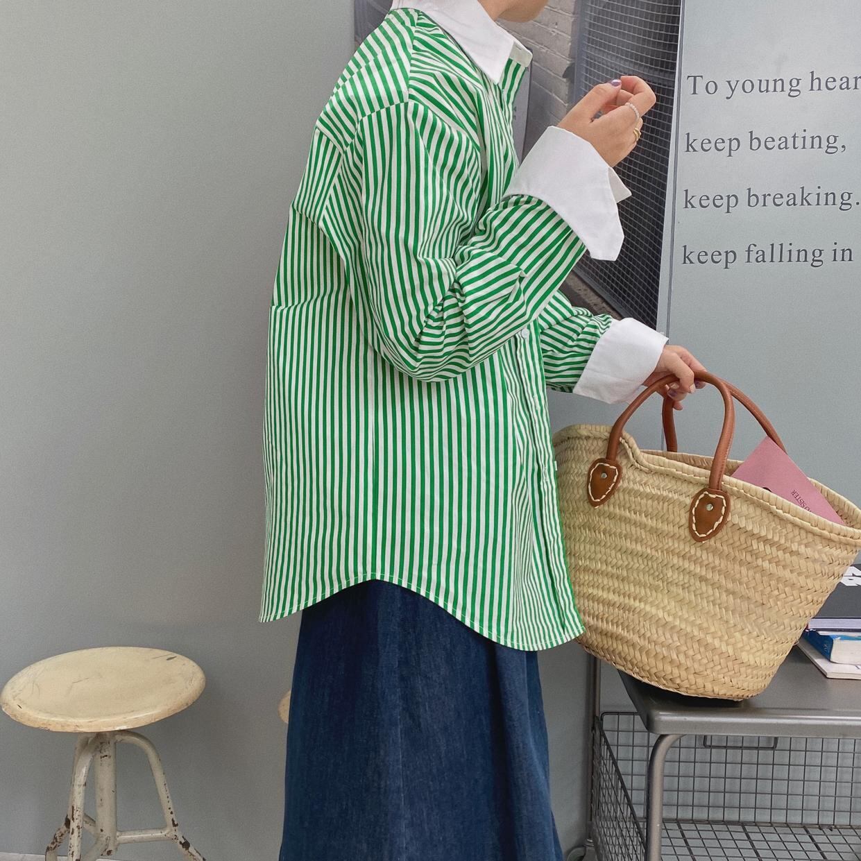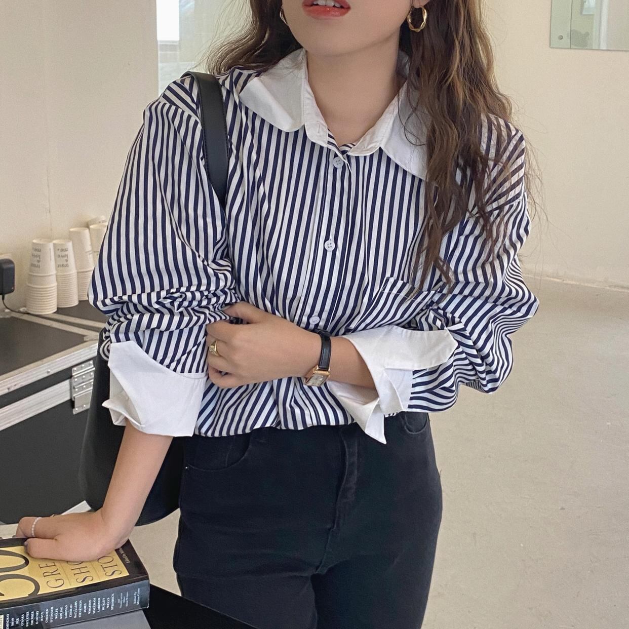 【送料無料】レディース 2カラー シャツ ストライプ バイカラー 長袖 オーバーサイズ 大人可愛い ママコーデ ママファッション 韓国 オルチャンファッション 人気 トレンド 新作 20代 30代 40代 きれいめ レトロ シンプル お出かけ デート おしゃれ 通勤 通学 オフィス OL デイリー 普段着 ラフ カジュアル フェミニン シック ゆったり 体型カバー 着痩せ 着回し インスタ映え 春 秋 CO3515