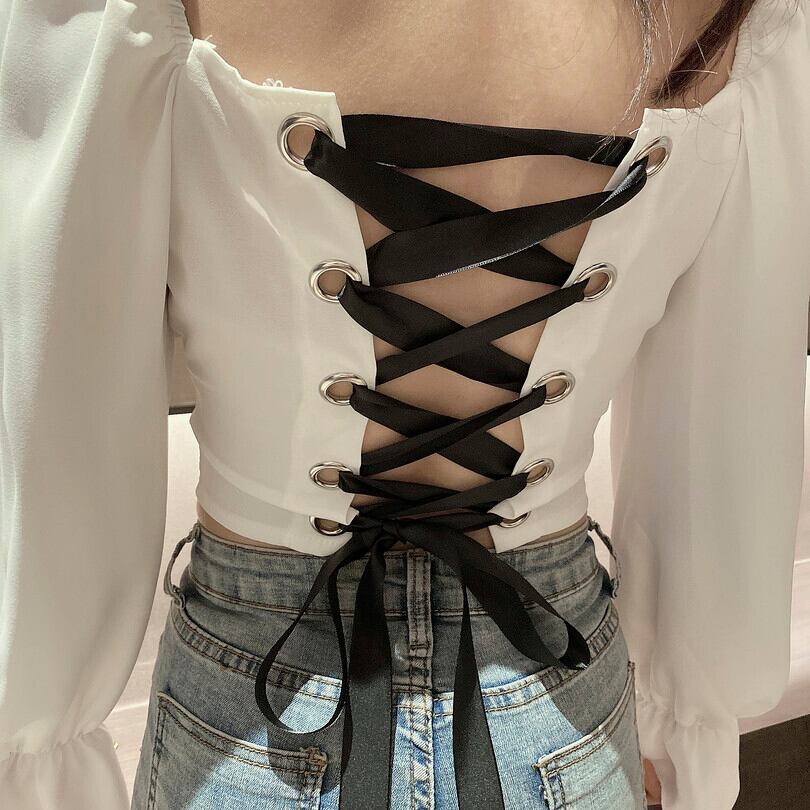 バックデザインレースアップブラウス♡