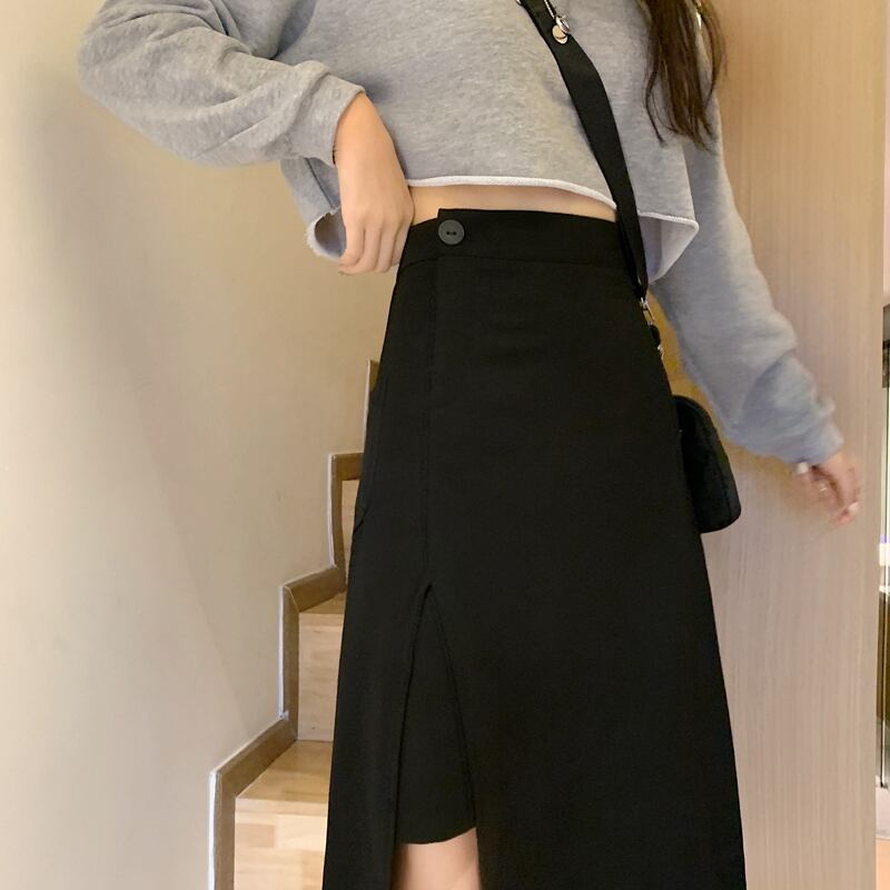 【送料無料】レディース スカート ミディアム丈 スリット Aライン ハイウエスト ブラック 無地 大人可愛い ママコーデ ママファッション 韓国 オルチャンファッション 人気 トレンド 新作 20代 30代 40代 きれいめ レトロ シンプル お出かけ デート おしゃれ 通勤 通学 オフィス OL デイリー 普段着 ラフ カジュアル フェミニン シック ゆったり 体型カバー 着痩せ 着回し インスタ映え 春 秋 CO3528