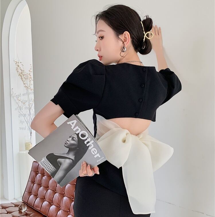 【送料無料】レディース プルオーバー トップス 半袖 バックリボン 背中開き セクシー ペプラム 大人可愛い ママコーデ ママファッション 韓国 オルチャンファッション 人気 トレンド 新作 20代 30代 40代 きれいめ レトロ シンプル お出かけ デート おしゃれ 通勤 通学 オフィス OL デイリー 普段着 カジュアル フェミニン シック 着痩せ 着回し インスタ映え 春 夏 CO3530