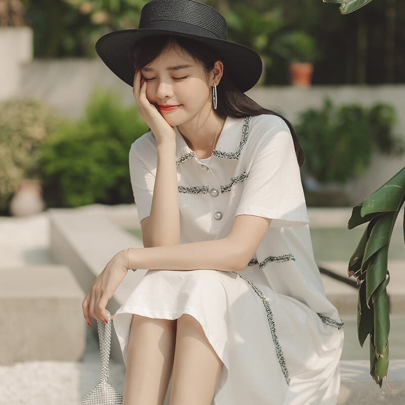 胸元のボタンデザインがポイントになったポロシャツ風ワンピース。