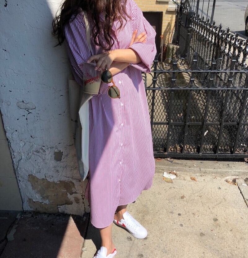 【送料無料】レディース 2カラー シャツワンピース ストライプ ロングワンピース ロング丈 長袖 大人可愛い ママコーデ ママファッション 韓国 オルチャンファッション 人気 トレンド 新作 20代 30代 40代 きれいめ レトロ シンプル お出かけ デート おしゃれ 通勤 通学 オフィス OL デイリー 普段着 ラフ カジュアル フェミニン シック ゆったり 体型カバー 着痩せ 着回し インスタ映え 春 夏 CO3537