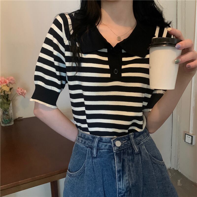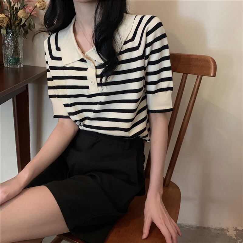【送料無料】レディース 2カラー ポロシャツ Tシャツ 半袖 ボーダー柄 襟付き 大人可愛い ママコーデ ママファッション 韓国 オルチャンファッション 人気 トレンド 新作 20代 30代 40代 きれいめ レトロ シンプル お出かけ デート おしゃれ 通勤 通学 オフィス OL デイリー 普段着 ラフ カジュアル フェミニン シック ゆったり 体型カバー 着痩せ 着回し インスタ映え 春 夏 CO3544