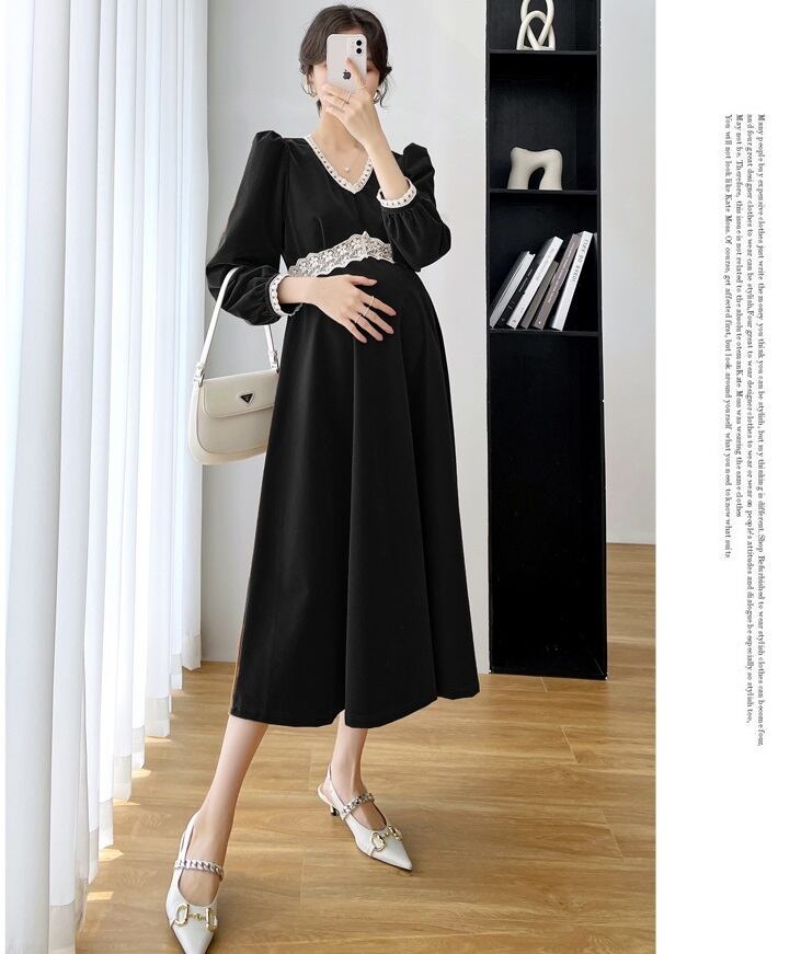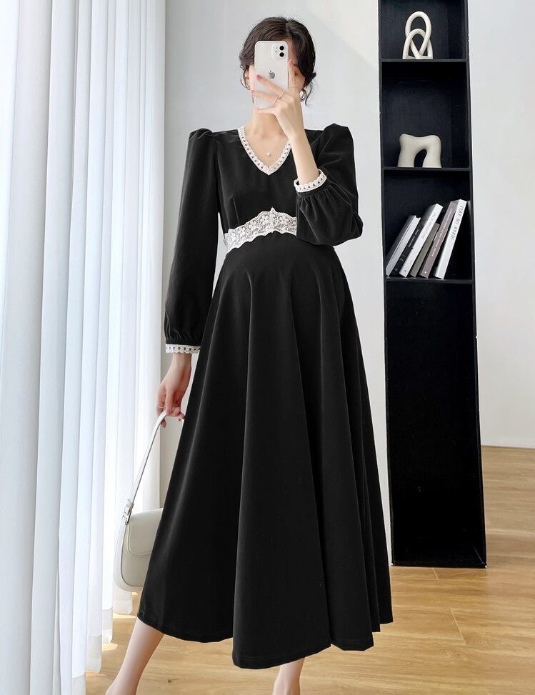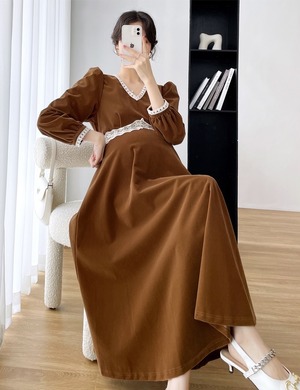 【日本未発売/送料無料】マタニティ ワンピース Vネック パフスリーブ ハイウエスト レース フレア レディース 可愛い ママコーデ ママファッション ママ服 マタニティウェア 人気 ゆったり 大きいサイズ デイリー 普段着 お出かけ おしゃれ シンプル 無地 きれいめ カジュアル フェミニン シック 体型カバー 着痩せ 着回し お宮参り マタニティフォト 通勤 妊婦服 産前 産後 秋 春 CO3325