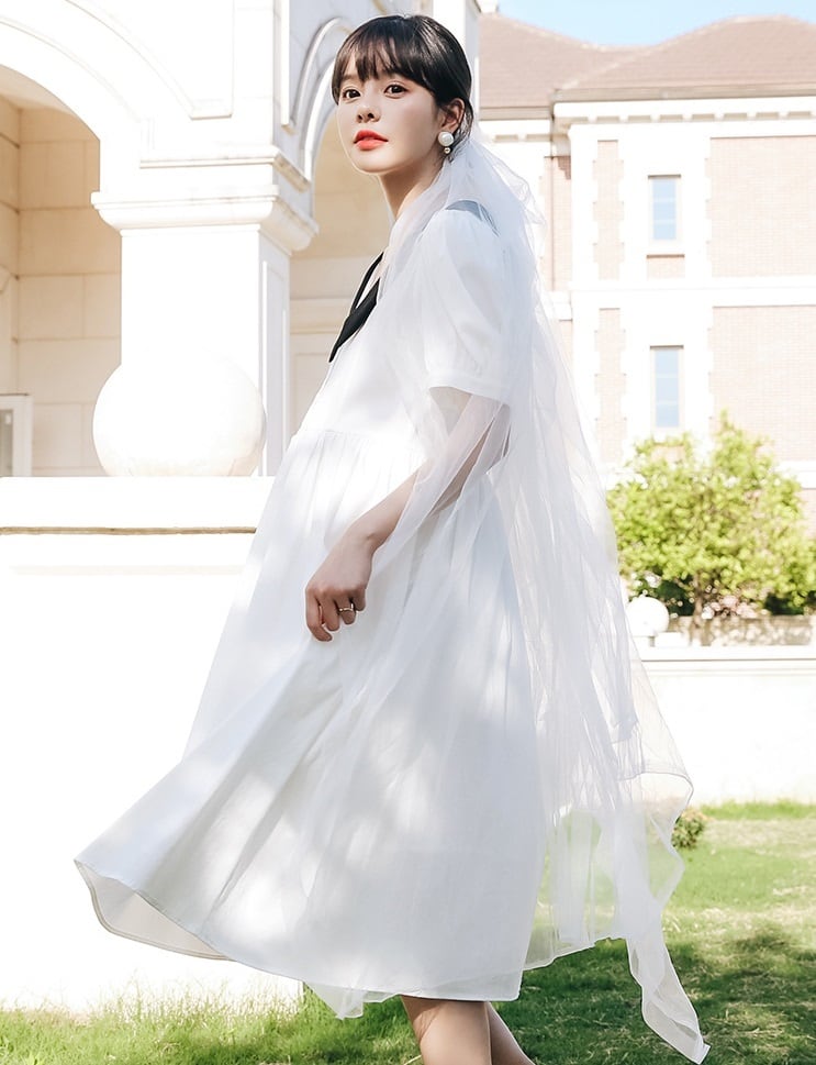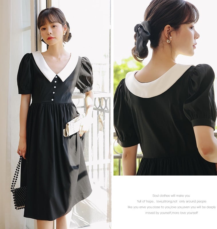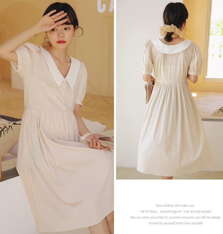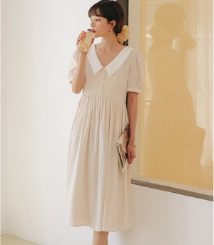 【日本未発売/送料無料】マタニティ ワンピース Vネック 襟付き ボリュームスリーブ 半袖 ハイウエスト バイカラー レディース 可愛い ママコーデ ママファッション ママ服 マタニティウェア 人気 ゆったり 大きいサイズ デイリー 普段着 お出かけ おしゃれ シンプル 無地 きれいめ カジュアル フェミニン シック 体型カバー 着痩せ 着回し お宮参り マタニティフォト 通勤 妊婦服 産前 産後 春 夏 CO3337