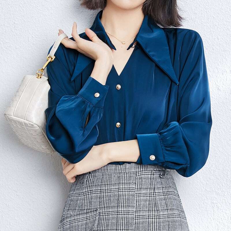 【送料無料】レディース Vカットネック サテン シャツ ブラウス 4color 長袖 大人可愛い ママコーデ ママファッション 韓国 オルチャンファッション 人気 トレンド 新作 20代 30代 40代 きれいめ レトロ シンプル 無地 定番 お出かけ デート おしゃれ 通勤 通学 オフィス OL デイリー 普段着 ラフ カジュアル フェミニン シック ゆったり 体型カバー 着痩せ 着回し インスタ映え 秋 春 夏 CO3348