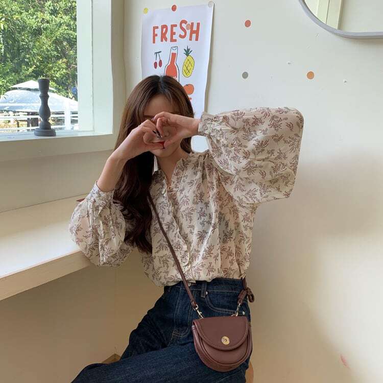 レトロ感あるフラワー柄が可愛いフリルシフォンブラウス。