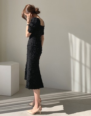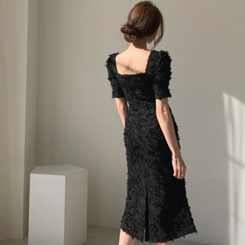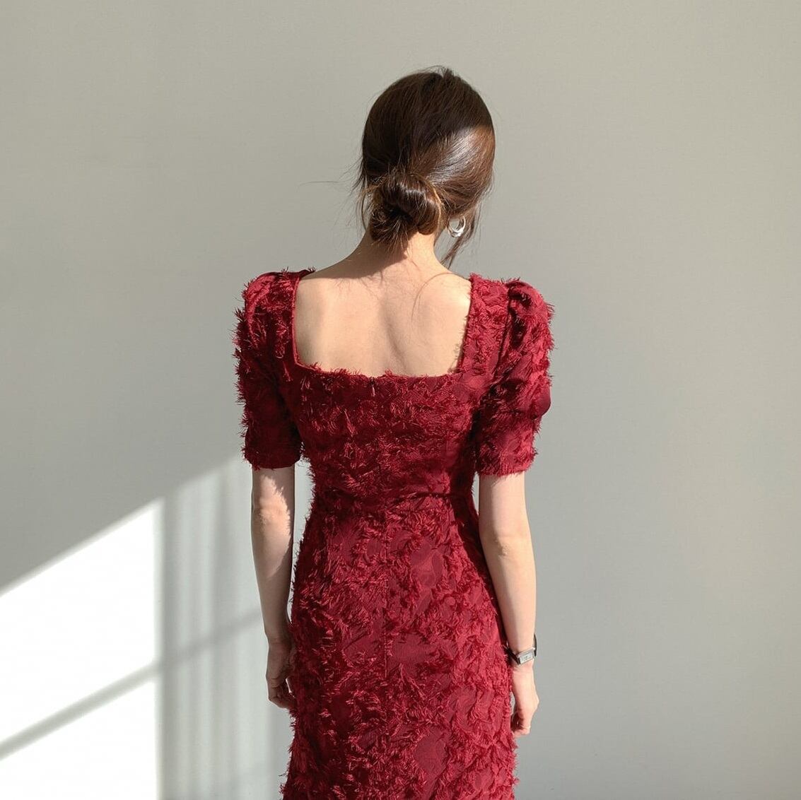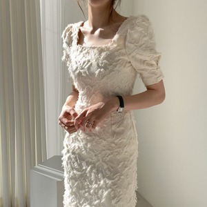 【送料無料】レディース ワンピース ドレス 3color ミドル丈 ジャガード フェザー スクエアネック 背中見せ 半袖 タイト スリム スリット 大人可愛い ママコーデ ママファッション 韓国 オルチャンファッション 人気 トレンド 新作 20代 30代 40代 きれいめ レトロ シンプル 無地 定番 お出かけ デート おしゃれ 通勤 通学 オフィス OL デイリー 普段着 ラフ カジュアル フェミニン シック ゆったり 体型カバー 着痩せ 着回し インスタ映え 春 夏 CO3350