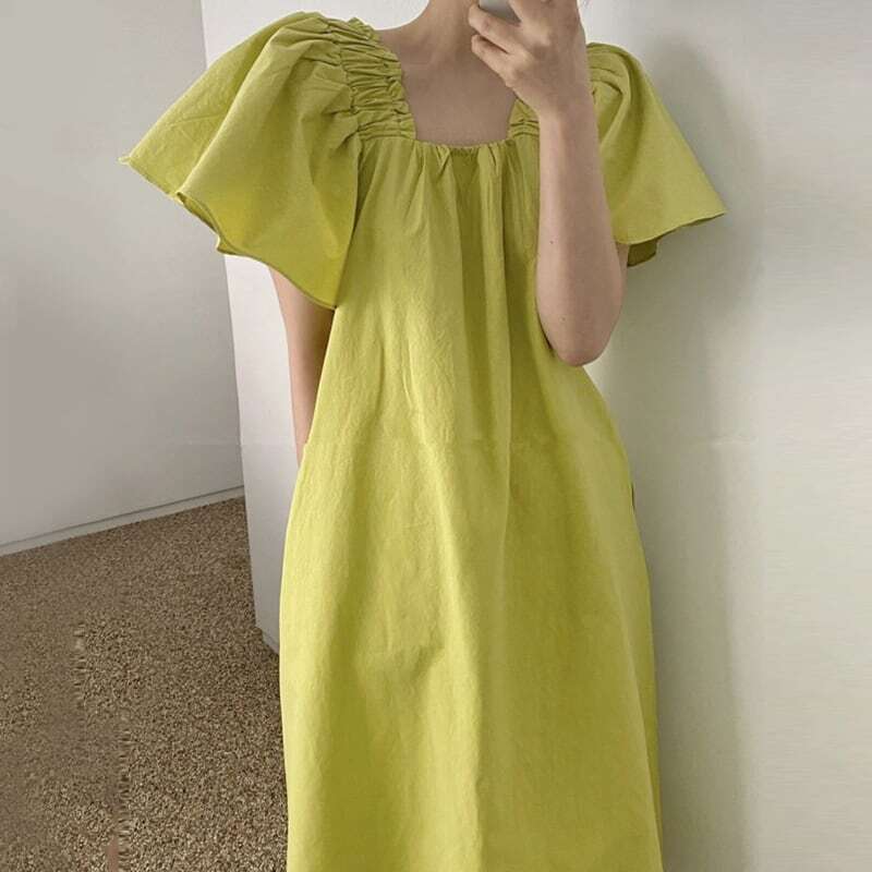 【送料無料】レディース ワンピース スクエアネック フリル Aライン ロング 半袖 パステルカラー 大人可愛い ママコーデ ママファッション 韓国 オルチャンファッション 人気 トレンド 新作 20代 30代 40代 きれいめ レトロ シンプル 無地 定番 お出かけ デート おしゃれ 通勤 通学 オフィス OL デイリー 普段着 ラフ カジュアル フェミニン シック ゆったり 体型カバー 着痩せ 着回し インスタ映え 春 夏 CO3351