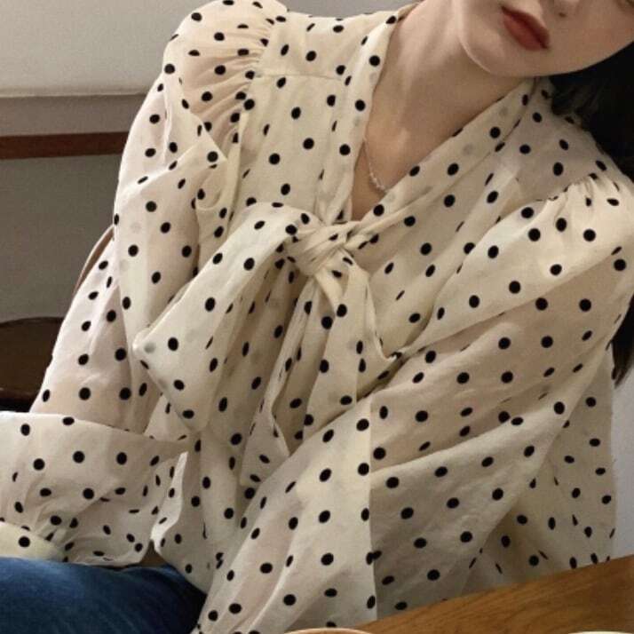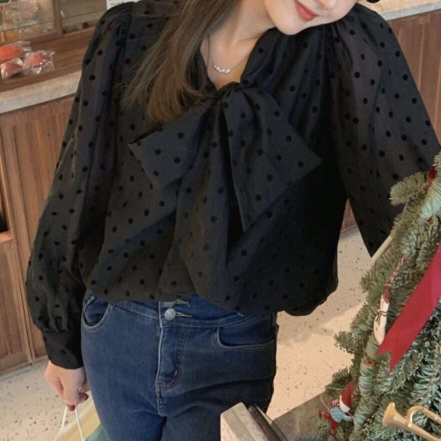 【送料無料】レディース ドット柄 水玉 ボウタイ ブラウス ボリュームスリーブ 2color 長袖 大人可愛い ママコーデ ママファッション 韓国 オルチャンファッション 人気 トレンド 新作 20代 30代 40代 きれいめ レトロ シンプル 無地 定番 お出かけ デート おしゃれ 通勤 通学 オフィス OL デイリー 普段着 ラフ カジュアル フェミニン シック ゆったり 体型カバー 着痩せ 着回し インスタ映え 秋 春 夏 CO3359