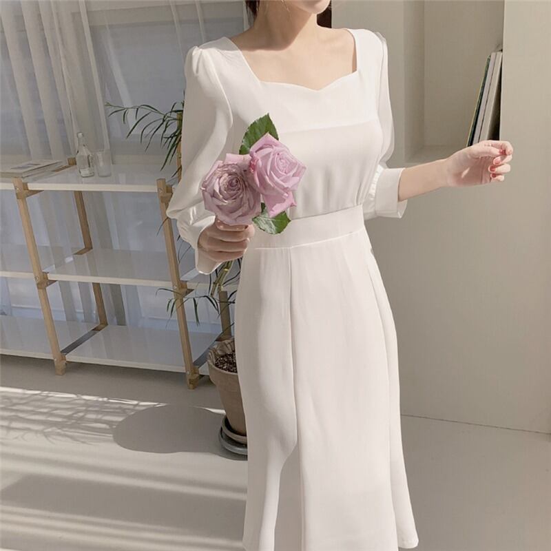 【送料無料】レディース ワンピース シースルー マーメイド 5分袖 パフスリーブ バックリボン ウエストマーク タック 大人可愛い ママコーデ ママファッション 韓国 オルチャンファッション 人気 トレンド 新作 20代 30代 40代 きれいめ レトロ シンプル 無地 定番 お出かけ デート おしゃれ 通勤 通学 オフィス OL デイリー 普段着 ラフ カジュアル フェミニン シック ゆったり 体型カバー 着痩せ 着回し インスタ映え 春 夏 CO3374