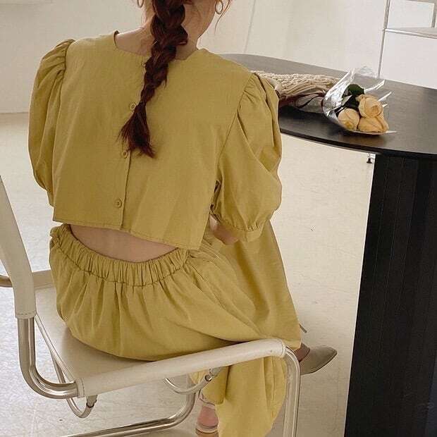 【送料無料】レディース ワンピース 背中あき パフスリーブ 肌見せ バックコンシャス 大人可愛い ママコーデ ママファッション 韓国 オルチャンファッション 人気 トレンド 新作 20代 30代 40代 きれいめ レトロ シンプル 無地 定番 お出かけ デート おしゃれ 通勤 通学 オフィス OL デイリー 普段着 ラフ カジュアル フェミニン シック ゆったり 体型カバー 着痩せ 着回し インスタ映え 春 夏 CO3382
