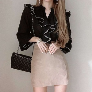 甘くフェミニンな雰囲気のフリルブラウス。