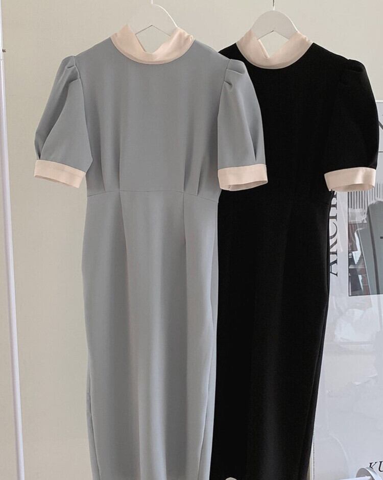 【送料無料】レディース ツートンカラー ハイネック バックリボン ワンピース 半袖 ハイウエスト 大人可愛い ママコーデ ママファッション 韓国 オルチャンファッション 人気 トレンド 新作 20代 30代 40代 きれいめ レトロ シンプル 無地 定番 お出かけ デート おしゃれ 通勤 通学 オフィス OL デイリー 普段着 ラフ カジュアル フェミニン シック ゆったり 体型カバー 着痩せ 着回し インスタ映え 春 夏 CO3386