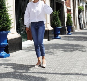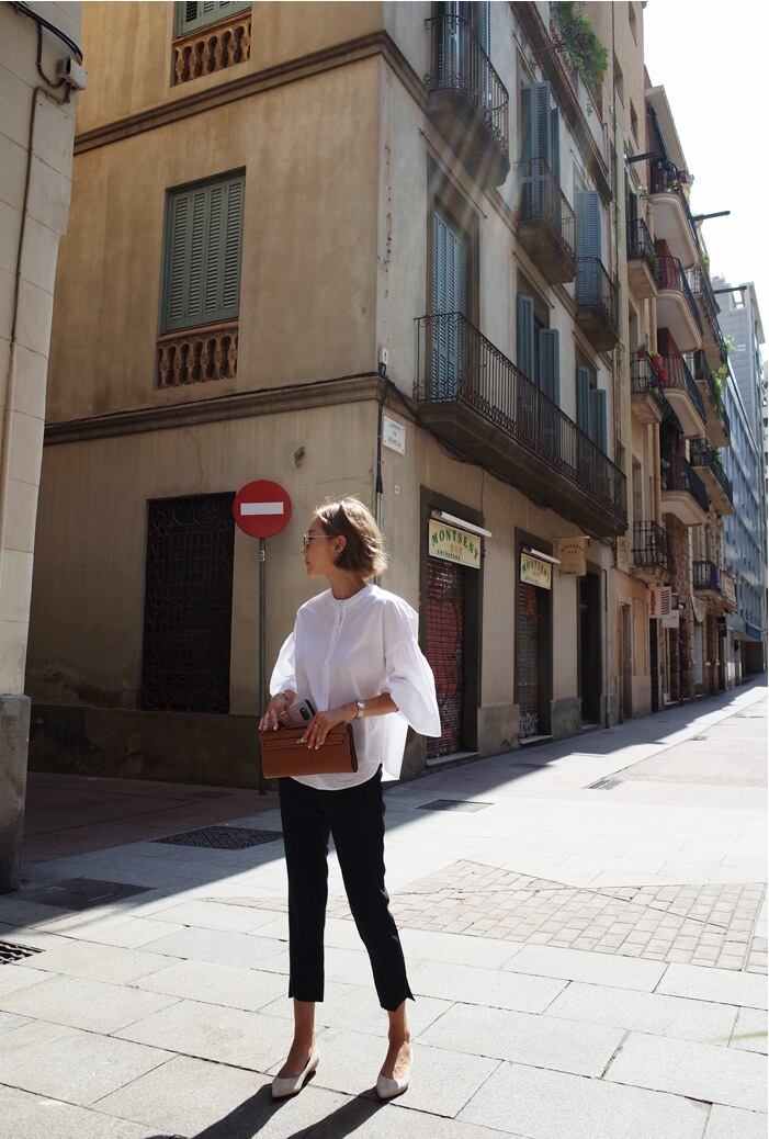 ドロップショルダーやランタンスリーブシルエットが女性らしい。