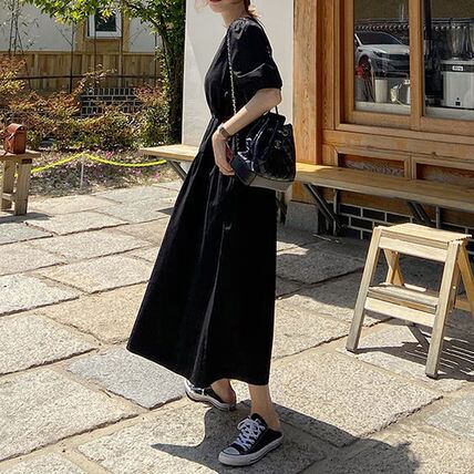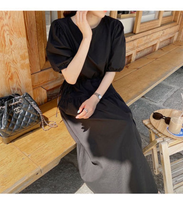【送料無料】レディース ワンピース パフスリーブ サイドリボン 半袖 ロング丈 フレア ブラック 大人可愛い ママコーデ ママファッション 韓国 オルチャンファッション 人気 トレンド 新作 20代 30代 40代 きれいめ レトロ シンプル お出かけ デート おしゃれ 通勤 通学 オフィス OL デイリー 普段着 ラフ カジュアル フェミニン シック ゆったり 体型カバー 着痩せ 着回し インスタ映え 春 夏 秋 CO3582