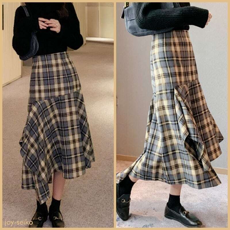 【送料無料】レディース スカート チェック柄 ミモレ丈 アシンメトリー 膝下 格子縞 イレギュラーヘム Aライン ハイウエスト 大人可愛い ママコーデ ママファッション 韓国 オルチャンファッション 人気 トレンド 新作 20代 30代 40代 きれいめ レトロ シンプル 無地 定番 お出かけ デート おしゃれ 通勤 通学 オフィス OL デイリー 普段着 ラフ カジュアル フェミニン シック ゆったり 体型カバー 着痩せ 着回し インスタ映え 秋 春 CO3408
