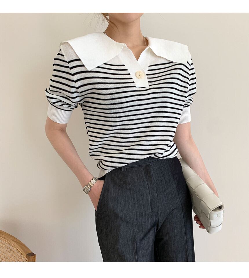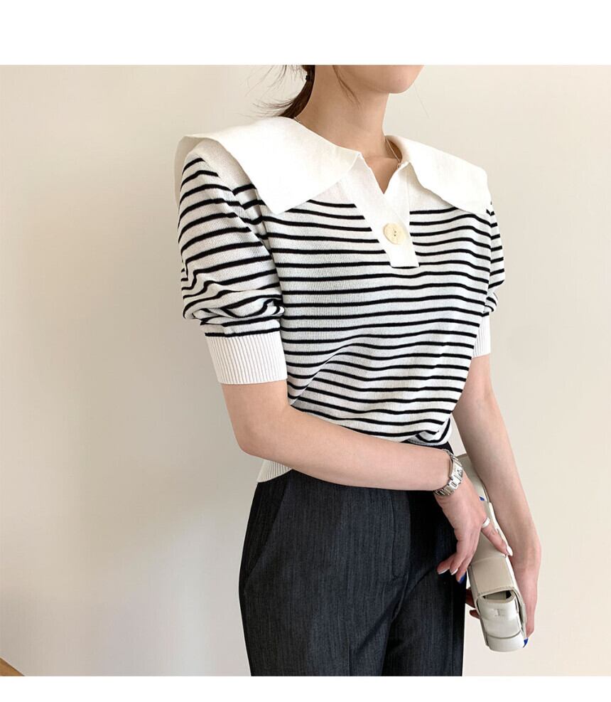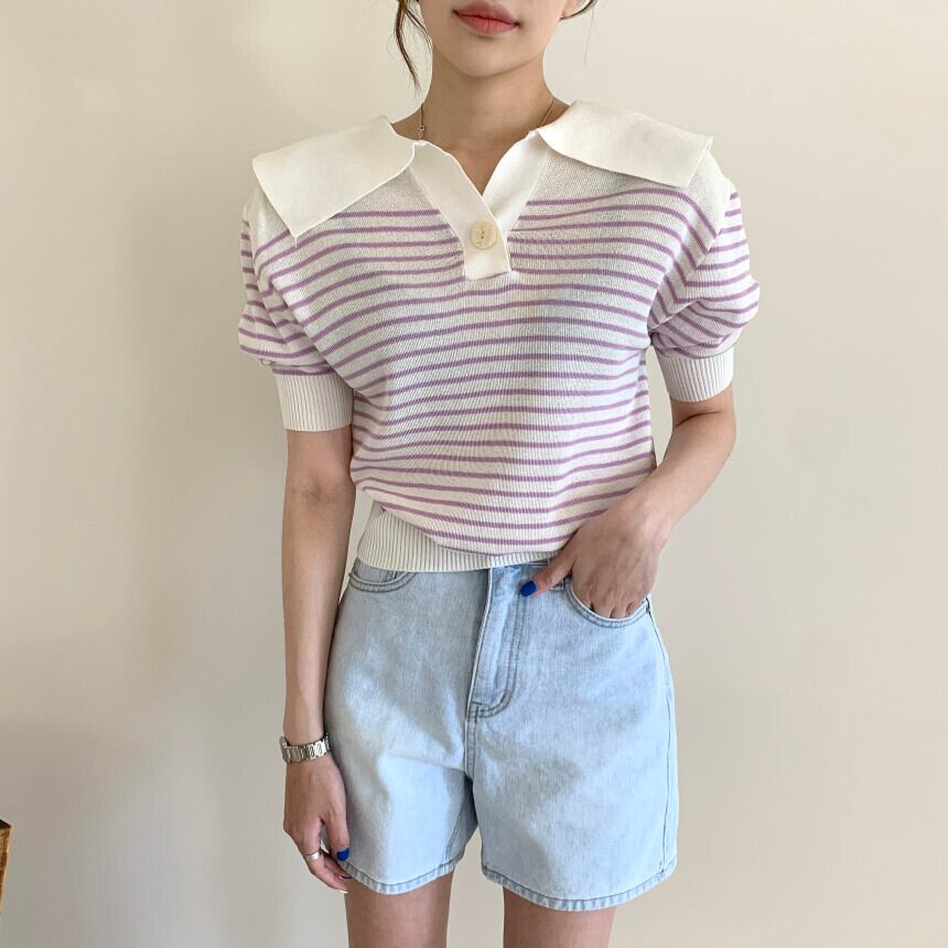 【送料無料】レディース 2カラー プルオーバー トップス 半袖 ボーダー柄 ビックカラー パフスリーブ ボタン 大人可愛い ママコーデ ママファッション 韓国 オルチャンファッション 人気 トレンド 新作 20代 30代 40代 きれいめ レトロ シンプル お出かけ デート おしゃれ 通勤 通学 オフィス OL デイリー 普段着 ラフ カジュアル フェミニン シック ゆったり 体型カバー 着痩せ 着回し インスタ映え 春 夏 CO3586