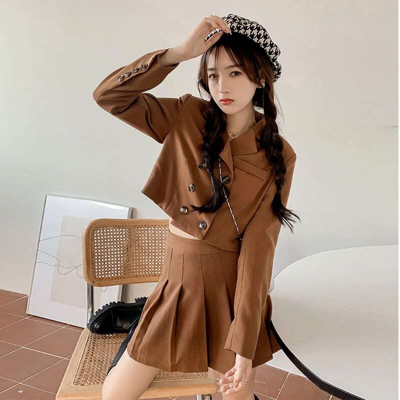 【送料無料】レディース セットアップ スーツ ジャケット + スカート 2点セット 上下セット プリーツスカート ミニ ショート丈 大人可愛い ママコーデ ママファッション 韓国 オルチャンファッション 人気 トレンド 新作 20代 30代 40代 きれいめ レトロ シンプル 無地 定番 お出かけ デート おしゃれ 通勤 通学 オフィス OL デイリー 普段着 ラフ カジュアル フェミニン シック ゆったり 体型カバー 着痩せ 着回し インスタ映え 秋 春 CO3436