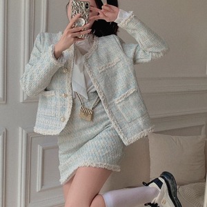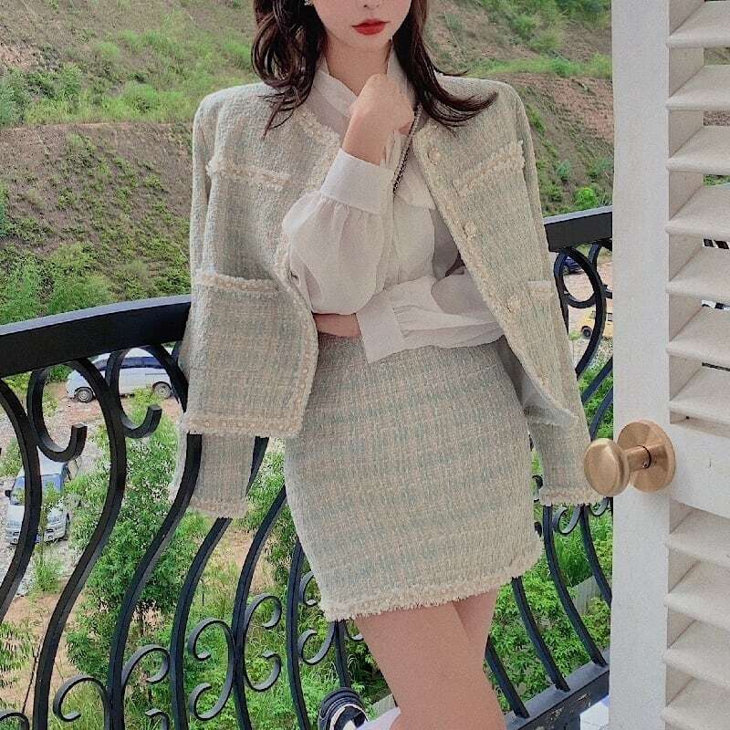 【送料無料】レディース セットアップ スーツ 長袖 ジャケット + スカート パールボタン 2点セット 上下セット ミニ ショート丈 ツイード 大人可愛い ママコーデ ママファッション 韓国 オルチャンファッション 人気 トレンド 新作 20代 30代 40代 きれいめ レトロ シンプル 無地 定番 お出かけ デート おしゃれ 通勤 通学 オフィス OL デイリー 普段着 ラフ カジュアル フェミニン シック ゆったり 体型カバー 着痩せ 着回し インスタ映え 秋 春 CO3445