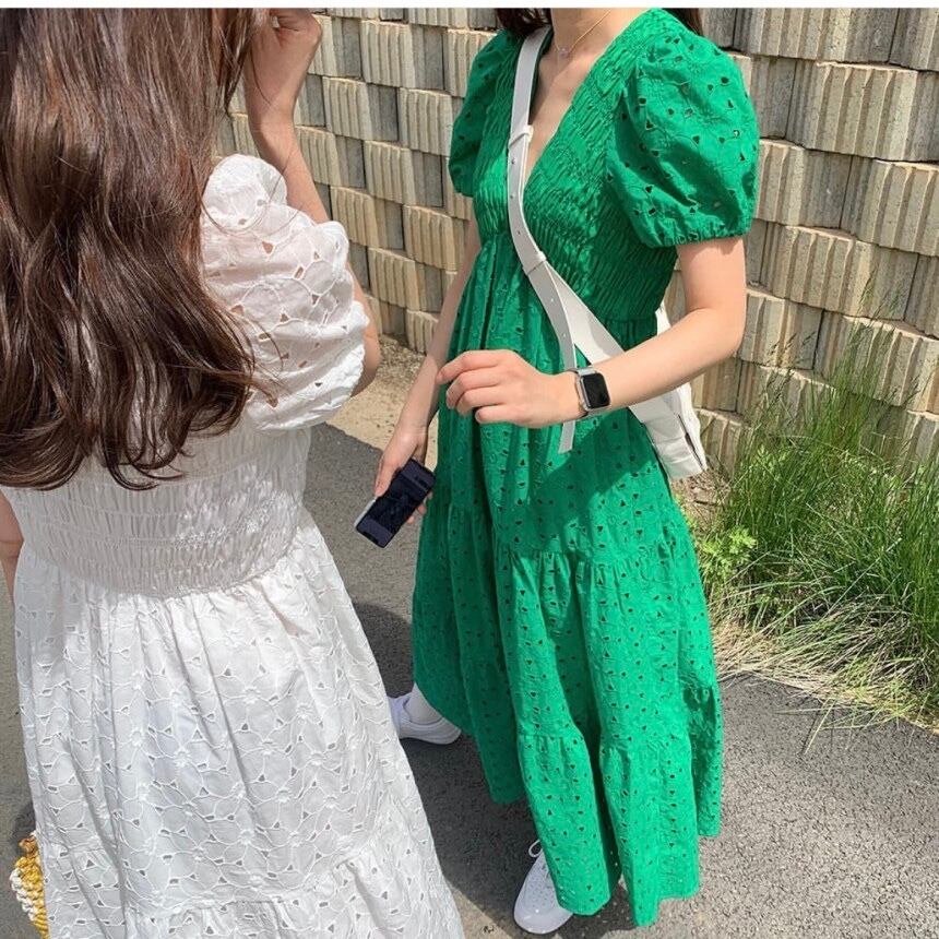 【送料無料】レディース 4カラー ロングワンピース ティアード 半袖 パフスリーブ Vネック ギャザー 大人可愛い ママコーデ ママファッション 韓国系 オルチャンファッション 人気 トレンド 新作 20代 30代 40代 きれいめ レトロ シンプル お出かけ デート おしゃれ 通勤 通学 オフィス OL デイリー 普段着 ラフ カジュアル フェミニン シック ゆったり 体型カバー 着痩せ 着回し インスタ映え 春 夏 CO3753