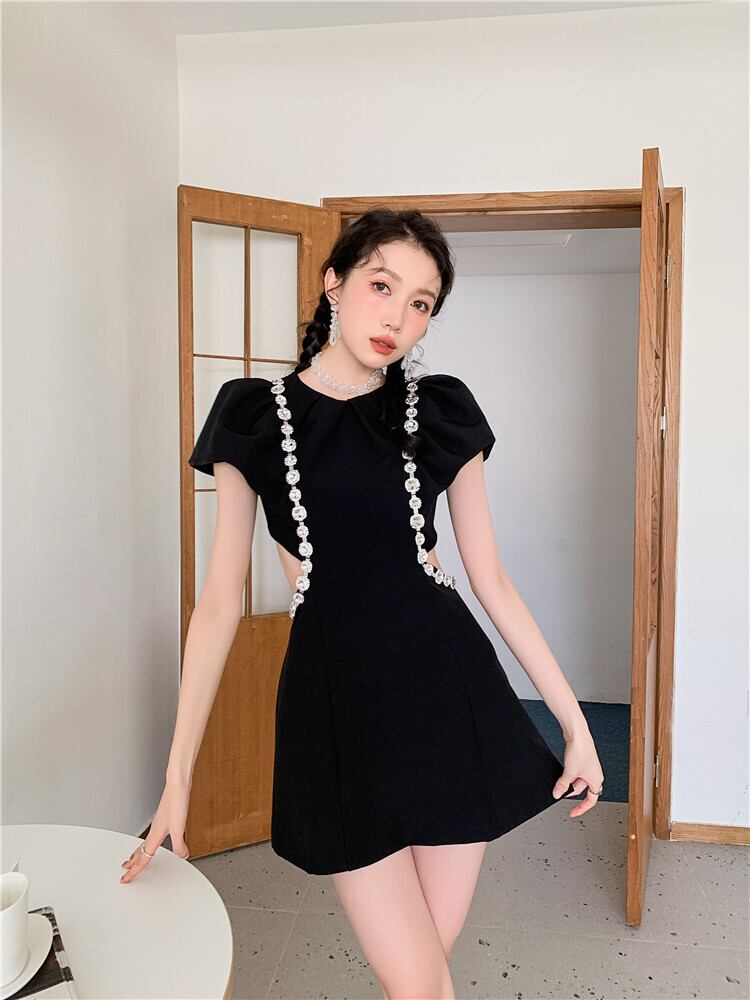 【送料無料】レディース ワンピース ラインストーン ビーズ ビジュー カットアウト ミニ丈 ミニワンピース ジップアップ パフスリーブ 大人可愛い ママコーデ ママファッション 韓国系 オルチャンファッション 人気 トレンド 新作 20代 30代 40代 きれいめ レトロ シンプル お出かけ デート おしゃれ 通勤 通学 オフィス OL デイリー 普段着 カジュアル フェミニン シック 着痩せ 着回し インスタ映え 春 夏 CO3759