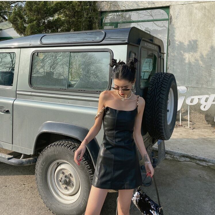 【送料無料】レディース レザーワンピース キャミソールワンピース ミニ丈 チェーンストラップ ジップアップ 大人可愛い ママコーデ ママファッション 韓国系 オルチャンファッション 人気 トレンド 新作 20代 30代 40代 きれいめ レトロ シンプル お出かけ デート おしゃれ 通勤 通学 オフィス OL デイリー 普段着 ラフ カジュアル フェミニン シック ゆったり 体型カバー 着痩せ 着回し インスタ映え 春 夏 秋 CO3780