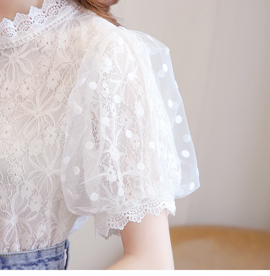 花柄レースやシアー素材パフスリーブがフェミニンなブラウス♪