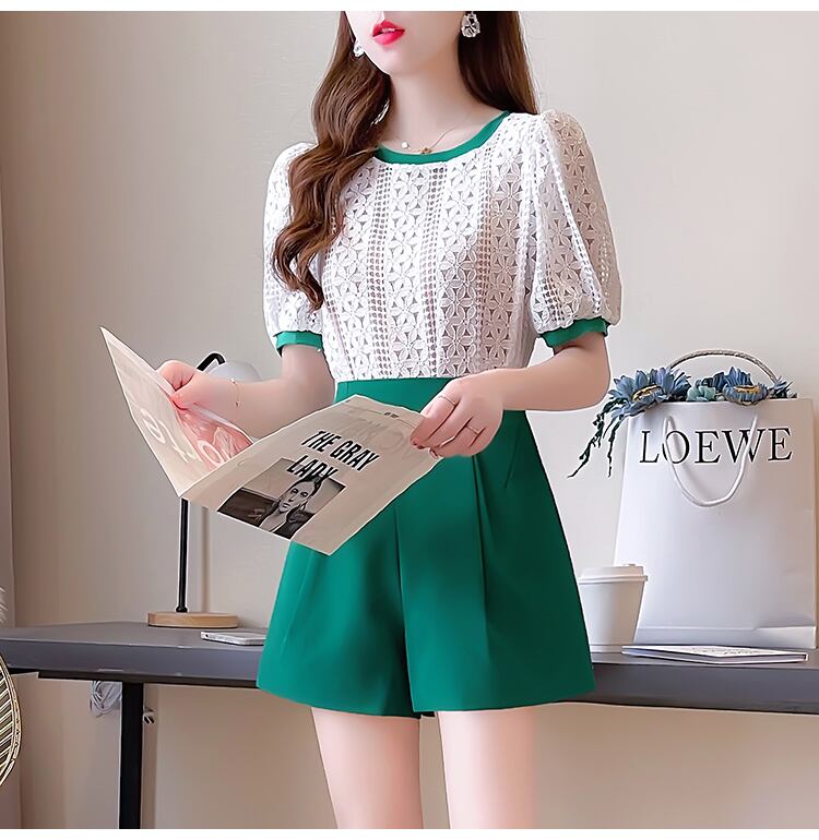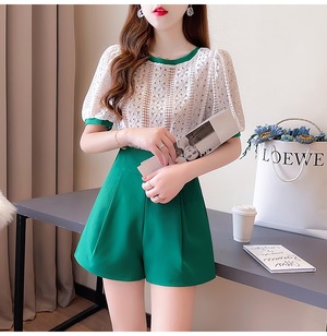 【日本未発売/送料無料】レディース セットアップ トップス プルオーバー 半袖 パフスリーブ レース 花柄 パンツ ショートパンツ タック ハイウエスト 大人可愛い ママコーデ ママファッション 韓国系 オルチャンファッション 人気 トレンド 新作 20代 30代 40代 きれいめ レトロ シンプル お出かけ デート おしゃれ 通勤 通学 オフィス OL デイリー 普段着 ラフ カジュアル フェミニン シック ゆったり 体型カバー 着痩せ 着回し インスタ映え 春 夏 CO3793