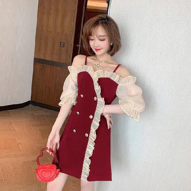 【送料無料】レディース 6カラー ワンピース キャミソールワンピース ミニ丈 フリル シフォン袖 オフショルダー ボタン パーティー 大人可愛い ママコーデ ママファッション 韓国系 オルチャンファッション 人気 トレンド 新作 20代 30代 40代 きれいめ レトロ シンプル お出かけ デート おしゃれ 通勤 通学 オフィス OL デイリー 普段着 カジュアル フェミニン シック 着痩せ 着回し インスタ映え 春 夏 秋 冬 CO3803